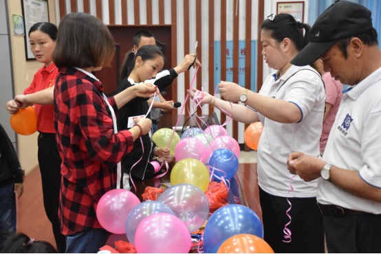 工作人員早早就來到多媒體教室進(jìn)行準(zhǔn)備,氣球、絲帶、彩旗、書包等,籌備的熱火朝天,還有熱情的小朋友們也來幫忙,雖然會(huì)出現(xiàn)氣球“砰”的爆炸聲,但是能換來一陣開心的笑聲還是值得的。